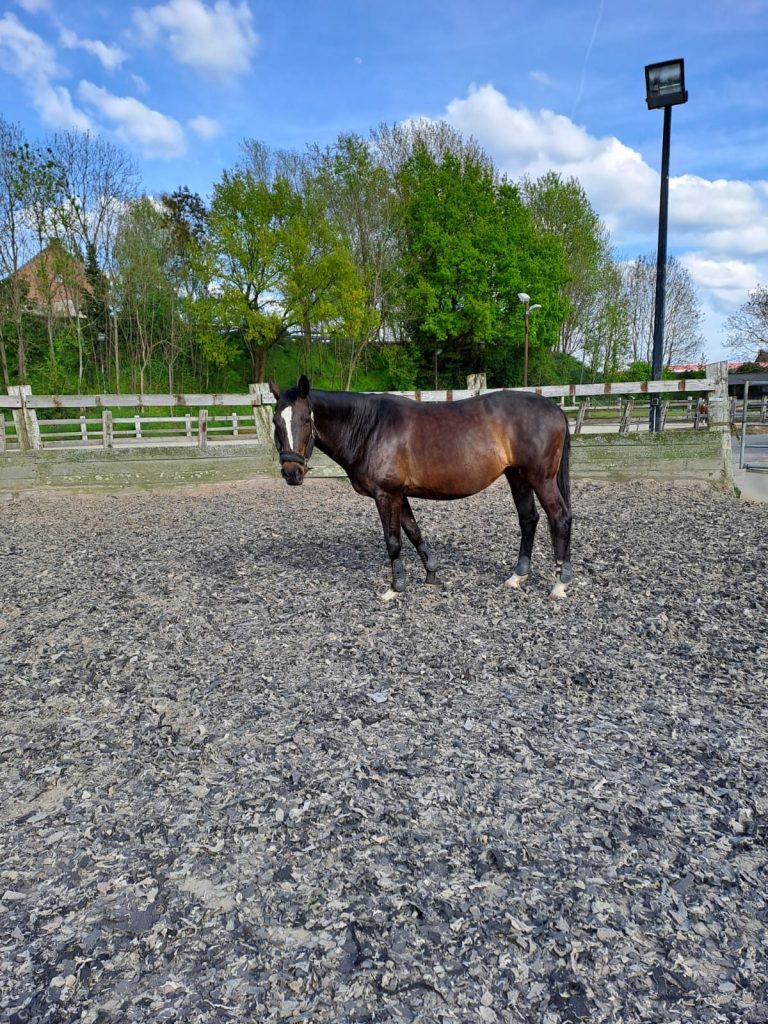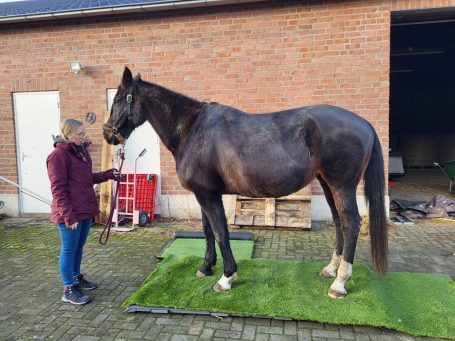 Foto 1: 30 april 2023 – Toen was ze al begonnen met afvallen, haar zadels en dekens pasten niet meer, ze had extreem veel overgewicht. We konden haar toen niet wegen, maar we vermoeden dat ze rond de 750 kilo woog.
